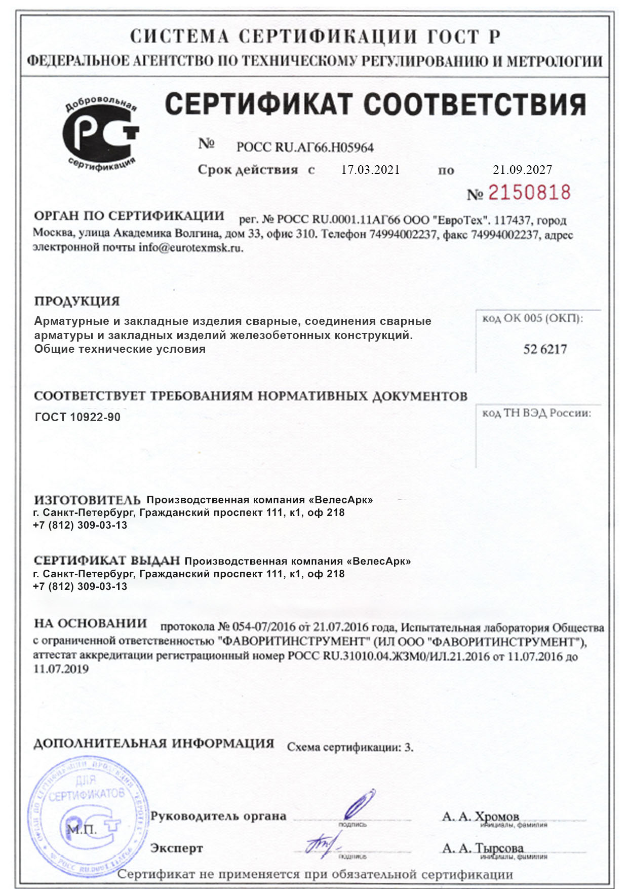 Закупку изделий произвели в компании Велесарк – нашего давнего поставщика, как всегда, качеством и доставкой довольны.